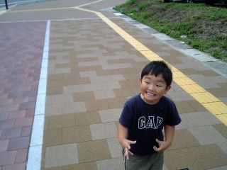 触ってみたら弾力があり、ヒザにやさしい歩道にびっくりです。