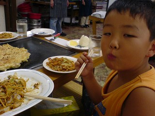 夕食は山鹿の『高専ダゴ』でお好み焼&焼そばを食べました。